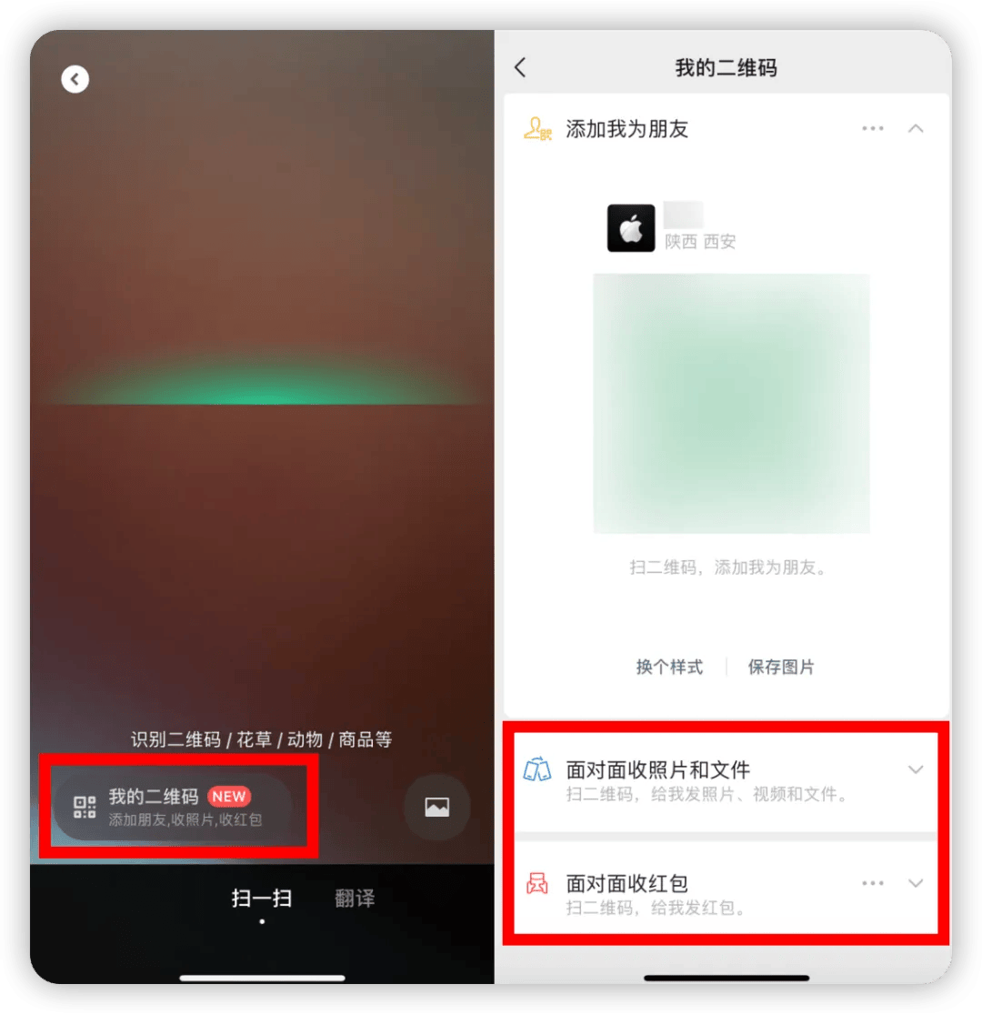 主要新增了两个非常实用的功能——「面对面收照片和文件」和「面对面收红包」。