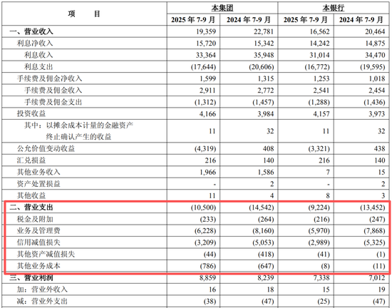 这种反差的背后,是信用减值损失计提的大幅减少。2025年第三季度,华夏银行信用减值损失32.09亿元,较2024年同期的50.53亿元下降36.49%。另一方面,营业成本的管控策略也在持续。第三季度,华夏银行业务及管理费支出62.28亿元,较2024年同期减少19.32亿元,同比下降30.02%。